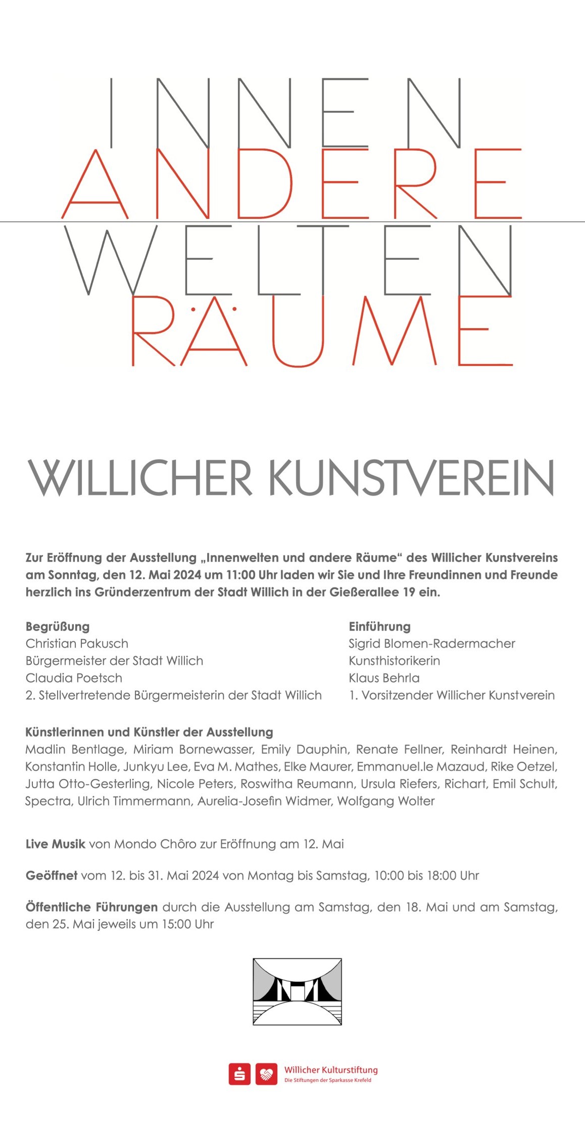 Die Ausstellung "Innenwelten und andere Räme" des Willicher Kunstvereins fand vom 12. bis zum 31. Mai 2024 im Gründerzentrum, Stahlwerk Becker, in Willich statt.